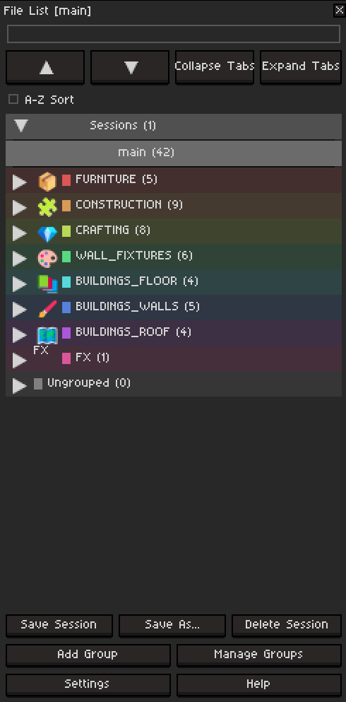 Advanced File Tabs is in active development! My goal is to make it the most powerful and intuitive project manager for Aseprite which will FULLY replace the default horizontal tab view. Here are some of the features I'm currently planning and working on: